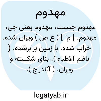 مهدوم. [ م َ ] ( ع ص ) ویران شده. خراب شده. با زمین برابرشده. ( ناظم الاطباء ). بنای شکسته و ویران. ( آنندراج ).