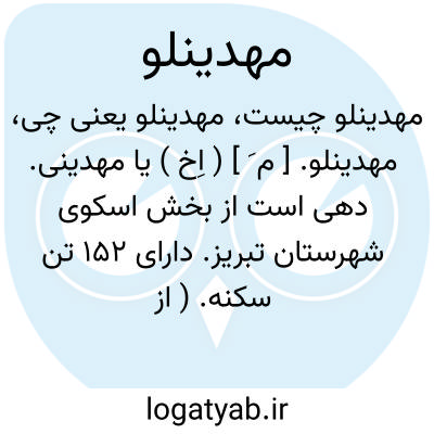 مهدینلو. [ م َ ] ( اِخ ) یا مهدینی. دهی است از بخش اسکوی شهرستان تبریز. دارای 152 تن سکنه. ( از فرهنگ جغرافیائی ایران ج 4 ).