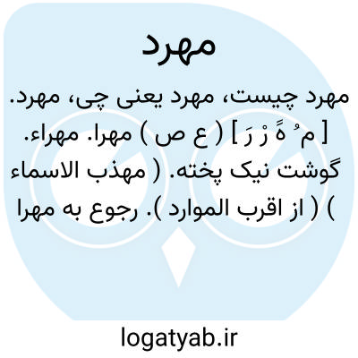 لغت نامه دهخدا مهرد. [ م ُ هََ رْ رَ ] ( ع ص ) مهرا. مهراء. گوشت نیک پخته. ( مهذب الاسماء ) ( از اقرب الموارد ). رجوع به مهرا شود.