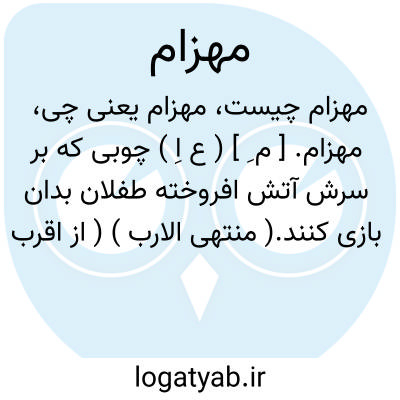 مهزام. [ م ِ ] ( ع اِ ) چوبی که بر سرش آتش افروخته طفلان بدان بازی کنند.( منتهی الارب ) ( از اقرب الموارد ). || سر در گلیم ( که نوعی بازی است ). ( السامی ). || چوب آتش کاو. || چوبدستی کوتاه. ( منتهی الارب ) ( از اقرب الموارد ). ج، مهازیم. ( اقرب الموارد ).