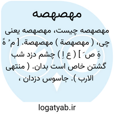 ( مهصهصة ) مهصهصة. [ م ُ هََ هَِ ص َ ] ( ع اِ ) چشم دزد شب گشتن خاص است بدان. ( منتهی الارب ). جاسوس دزدان، مخصوصاً در شب. ( از اقرب الموارد ).