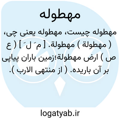 لغت نامه دهخدا ( مهطولة ) مهطولة. [ م َ ل َ ] ( ع ص ) ارض مهطولة؛زمین باران پیاپی بر آن باریده. ( از منتهی الارب ).