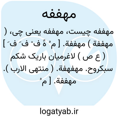 ( مهففة ) مهففة. [ م ُ هََ ف ْ ف َ ف َ ] ( ع ص ) لاغرمیان باریک شکم سبکروح. مهفهفة. ( منتهی الارب ). مهففة. [ م ُ هََف ْ ف َ ف َ ] ( اِخ ) مشرعه مهففة؛ نام محلی است میان شیراز و شیرجان. آن منزل دهم و یازدهم است از شیراز.رجوع به مشرعه شود. ( فارسنامه ابن البلخی ص 162 ).