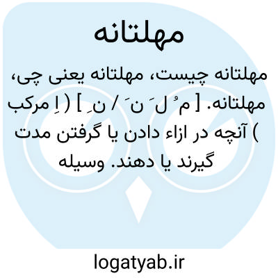 مهلتانه. [ م ُ ل َ ن َ / ن ِ ] ( اِ مرکب ) آنچه در ازاء دادن یا گرفتن مدت گیرند یا دهند. وسیله مهلت طلبی: ایلچیان نیز که به تحصیل آن می رفتند و خدمتی و مهلتانه ای بسیار می ستدند مهمل می گذاشتند. ( تاریخ غازانی ص 327 ).