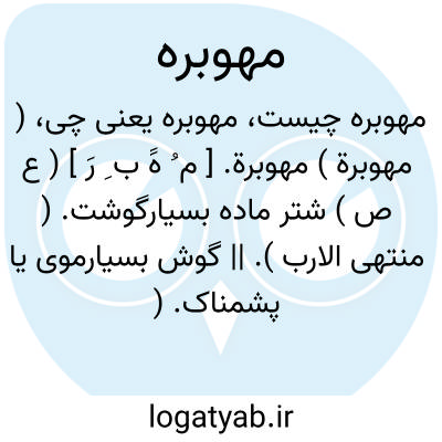 لغت نامه دهخدا ( مهوبرة ) مهوبرة. [ م ُ هََ ب ِ رَ ] ( ع ص ) شتر ماده بسیارگوشت. ( منتهی الارب ). || گوش بسیارموی یا پشمناک. ( منتهی الارب ). اذن مهوبرة؛ گوش بسیارموی. ( مهذب الاسماء ).