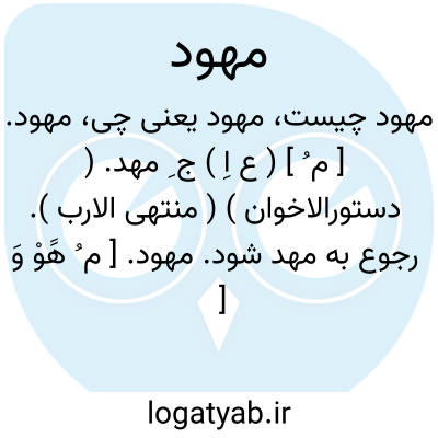 لغت نامه دهخدا مهود. [ م ُ ] ( ع اِ ) ج ِ مهد. ( دستورالاخوان ) ( منتهی الارب ). رجوع به مهد شود.مهود. [ م ُ هََوْ وَ ] ( ع ص ) غناء مهود؛ غناء نرم و آهسته. ( منتهی الارب، ماده هَ و د ). آواز و تغنی ملایم و نرم. ( ناظم الاطباء ). || یهودی شده. رجوع به تهوید شود.