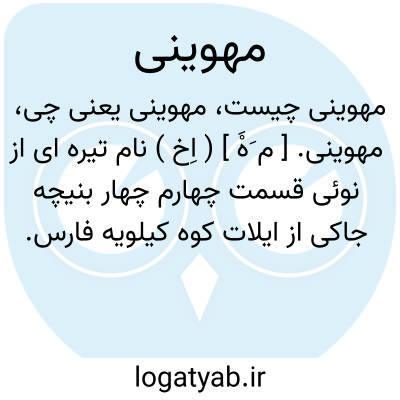مهوینی. [ م َهَْ ] ( اِخ ) نام تیره ای از نوئی قسمت چهارم چهار بنیچه جاکی از ایلات کوه کیلویه فارس. ( جغرافیای سیاسی کیهان ص 89 ).