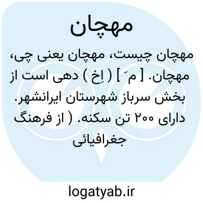 مهچان. [ م َ ] ( اِخ ) دهی است از بخش سرباز شهرستان ایرانشهر. دارای 200 تن سکنه. ( از فرهنگ جغرافیائی ایران ج 8 ).