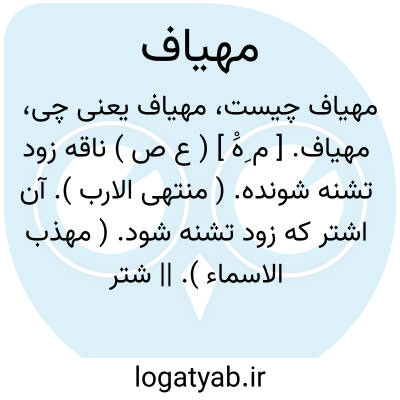 مهیاف. [ م ِهَْ ] ( ع ص ) ناقه زود تشنه شونده. ( منتهی الارب ). آن اشتر که زود تشنه شود. ( مهذب الاسماء ). || شتر درازگردن. || مردم سریعالعطش یا سخت تشنه. ( منتهی الارب ).