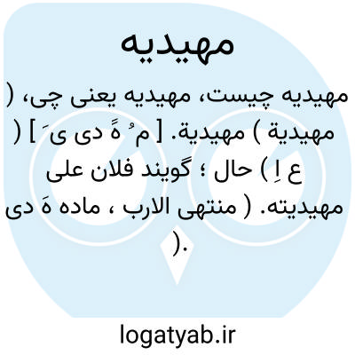 ( مهیدیة ) مهیدیة. [ م ُ هََ دی ی َ ] ( ع اِ ) حال؛ گویند فلان علی مهیدیته. ( منتهی الارب، ماده هَ دی ).