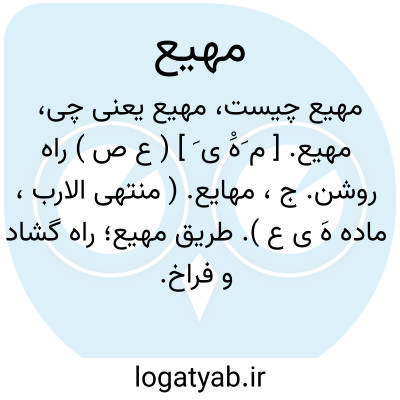 مهیع. [ م َهَْ ی َ ] ( ع ص ) راه روشن. ج، مهایع. ( منتهی الارب، ماده هَ ی ع ). طریق مهیع؛ راه گشاد و فراخ.