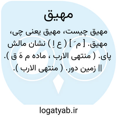 مهیق. [ م َ ] ( ع اِ ) نشان مالش پای. ( منتهی الارب، ماده م هَ ق ). || زمین دور. ( منتهی الارب ).