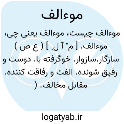 موءالف. [ م ُ آ ل ِ ] ( ع ص ) سازگار.سازوار. خوگرفته با. دوست و رفیق شونده. الفت و رفاقت کننده. مقابل مخالف. ( یادداشت مؤلف ):