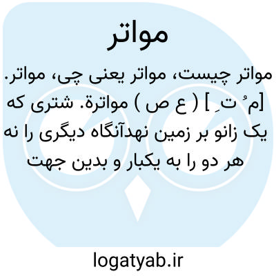 مواتر. [م ُ ت ِ ] ( ع ص ) مواترة. شتری که یک زانو بر زمین نهدآنگاه دیگری را نه هر دو را به یکبار و بدین جهت سواری وی مشکل باشد. یقال جمل مواتر. ( ناظم الاطباء ).