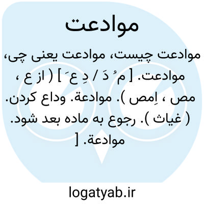 موادعت. [ م ُ دَ / دِ ع َ ] ( از ع، مص، اِمص ). موادعة. وداع کردن. ( غیاث ). رجوع به ماده بعد شود.