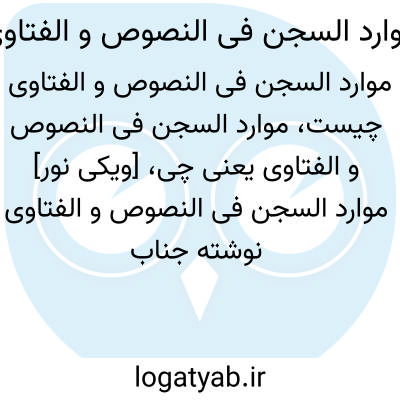 [ویکی نور] موارد السجن فی النصوص و الفتاوی نوشته جناب استاد نجم الدین طبسی، به بررسی جرایمی که مجازات آنها زندان بوده و نوع رفتار دولت اسلامی با زندانیان و رعایت حقوق انسانی آنها پرداخته و ابعاد این مسئله را مورد پژوهش قرار داده است.