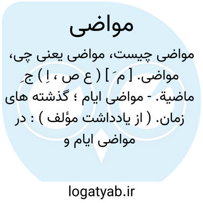 - مواضی ایام؛ گذشته های زمان. ( از یادداشت مؤلف ): در مواضی ایام و سوالف اعوام در اقلیم هندوستان پادشاهی بوده است. ( سندبادنامه ص 31 ). آورده اند که در مواضی دهر و سوالف سنین و شهور... ( سندبادنامه ص 218 ). در مواضی ایام دهقانی بوده است صاین و متدین و متورع و متقی. ( سندبادنامه ص 129 ). و رجوع به ماضی شود.