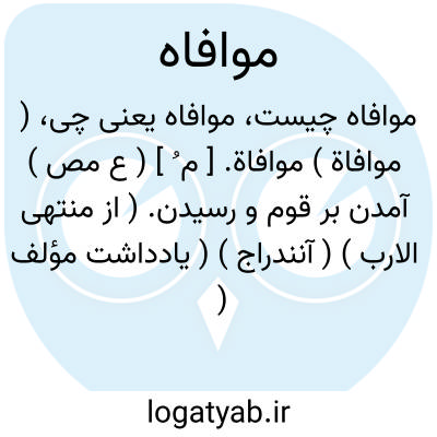( موافاة ) موافاة. [ م ُ ] ( ع مص ) آمدن بر قوم و رسیدن. ( از منتهی الارب ) ( آنندراج ) ( یادداشت مؤلف ) ( از اقرب الموارد ). آمدن گروهی را. ( ناظم الاطباء ). || حج گزاردن. ( منتهی الارب ) ( از ناظم الاطباء ) ( ازاقرب الموارد ). || به تمام گزاردن حق کسی را. ( از اقرب الموارد ) ( ناظم الاطباء ). || برآمدن بر چیزی و مشرف شدن بر آن. ( ناظم الاطباء ).