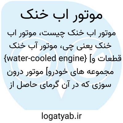 {water-cooled engine} [قطعات و مجموعه های خودرو] موتور درون سوزی که در آن گرمای حاصل از احتراق ازطریق گردش آب در یک مسیر بسته به محیط خارج انتقال می یابد و به این ترتیب سبب خنک شدن موتور می شود
