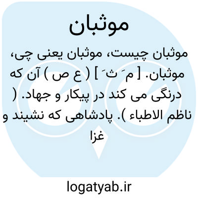 موثبان. [ م َ ث َ ] ( ع ص ) آن که درنگی می کند در پیکار و جهاد. ( ناظم الاطباء ). پادشاهی که نشیند و غزا نکند. ( آنندراج ). ای انه لایزال قاعداً علی الوثاب. ( منتهی الارب ). پادشاهی که همواره بر تخت استراحت نشیند و غزا نکند. ( ناظم الاطباء ). آنکه بر وثاب باشد ( وثاب به لفظ حمیر فراش را گویند ). ( از مجمل التواریخ و القصص ص 165 ).