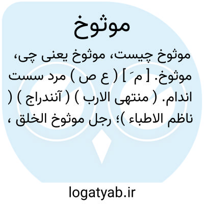 موثوخ. [ م َ ] ( ع ص ) مرد سست اندام. ( منتهی الارب ) ( آنندراج ) ( ناظم الاطباء )؛ رجل موثوخ الخلق، مُوَثَّخ. ( منتهی الارب ).
