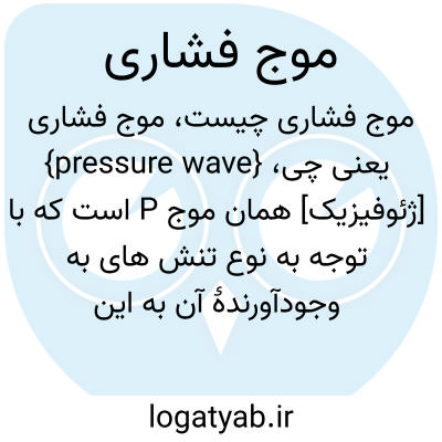{pressure wave} [ژئوفیزیک] همان موج P است که با توجه به نوع تنش های به وجودآورندۀ آن به این نام نیز خوانده می شود