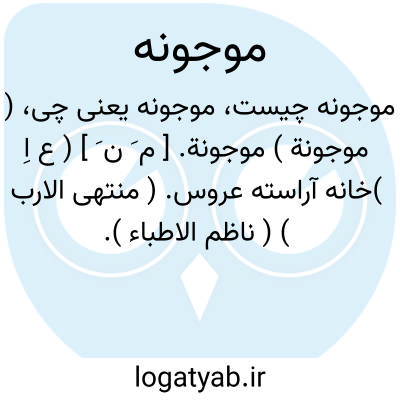 لغت نامه دهخدا ( موجونة ) موجونة. [ م َ ن َ ] ( ع اِ )خانه آراسته عروس. ( منتهی الارب ) ( ناظم الاطباء ).