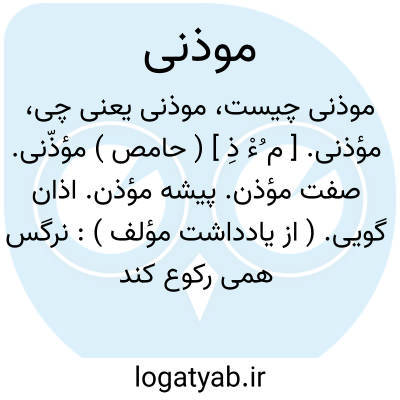 مؤذنی. [ م ُءْ ذِ ] ( حامص ) مؤذّنی. صفت مؤذن. پیشه مؤذن. اذان گویی. ( از یادداشت مؤلف ):