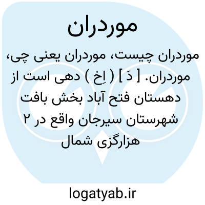 موردران. [ دَ ] ( اِخ ) دهی است از دهستان فتح آباد بخش بافت شهرستان سیرجان واقع در 2 هزارگزی شمال باختری بافت با 151 تن سکنه. آب آن از قنات و چشمه و راه آن ماشین رو است. ( از فرهنگ جغرافیائی ایران ج 8 ).