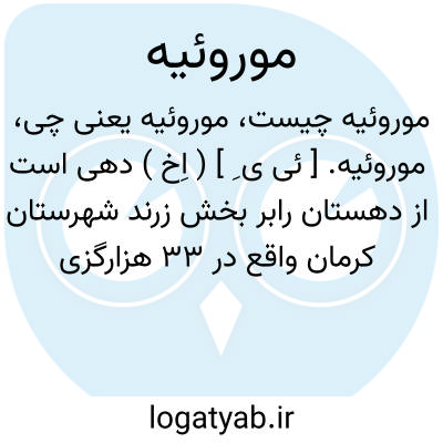 موروئیه. [ ئی ی ِ ] ( اِخ ) دهی است از دهستان رابر بخش زرند شهرستان کرمان واقع در 33 هزارگزی شمال باختری زرند با 152 تن سکنه. آب آن از قنات و راه آن مالرو است. ( از فرهنگ جغرافیائی ایران ج 8 ).