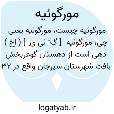 مورگوئیه. [ گ َ ئی ی ِ ] ( اِخ ) دهی است از دهستان گوغربخش بافت شهرستان سیرجان واقع در 32 هزارگزی شمال باختری بافت با 275 تن سکنه. آب آن از قنات و چشمه و راه آن مالرو است. ( از فرهنگ جغرافیائی ایران ج 8 ).