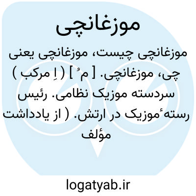 موزغانچی. [ م ُ ] ( اِ مرکب ) سردسته موزیک نظامی. رئیس رسته ٔموزیک در ارتش. ( از یادداشت مؤلف ). و رجوع به موزیکانچی شود. || موسیقی. ( یادداشت مؤلف ).