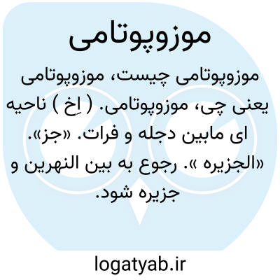 لغت نامه دهخدا موزوپوتامی. ( اِخ ) ناحیه ای مابین دجله و فرات. «جز». «الجزیره ». رجوع به بین النهرین و جزیره شود.