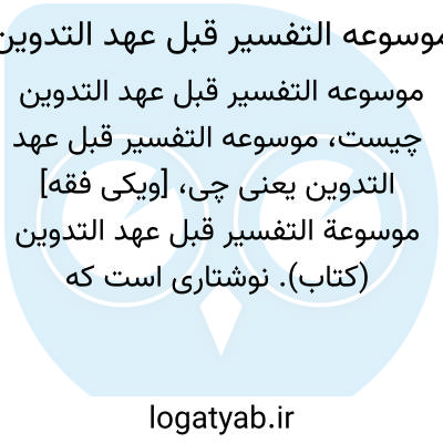 [ویکی فقه] موسوعه التفسیر قبل عهد التدوین (کتاب). نوشتاری است که در آن به بررسی وضعیت و کیفیت تفسیر قرآن کریم در زمان پیامبر اکرم صلی الله علیه و آله وسلّم و زمان صحابه و تابعین آن حضرت می پردازد.