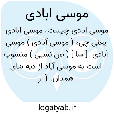 لغت نامه دهخدا ( موسی آبادی ) موسی آبادی. [ سا ] ( ص نسبی ) منسوب است به موسی آباد از دیه های همدان. ( از الانساب سمعانی ).