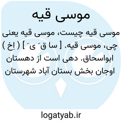 موسی قیه. [ سا ق َ ی َ ] ( اِخ ) ابواسحاق. دهی است از دهستان اوجان بخش بستان آباد شهرستان تبریز واقع در 7 هزارگزی جنوب باختری بستان آباد با 150 تن سکنه. آب آن از چشمه و راه آن مالرو است. ( از فرهنگ جغرافیائی ایران ج 4 ).