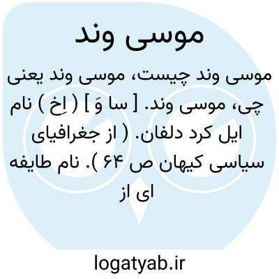 موسی وند. [ سا وَ ] ( اِخ ) نام ایل کرد دلفان. ( از جغرافیای سیاسی کیهان ص 64 ). نام طایفه ای از طوایف چهارگانه پیش کوه از ایلات کرد ایران است که از شعب ایل دلفان می باشد و در انتهای خاک خاوه سکونت دارند و عده آنها بالغ بر 2500 خانوار است. ( از یادداشت مؤلف ).
