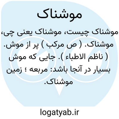موشناک. ( ص مرکب ) پر از موش. ( ناظم الاطباء ). جایی که موش بسیار در آنجا باشد: مربعه؛ زمین موشناک. فئر؛ زمین موشناک. ( از یادداشت مؤلف ).