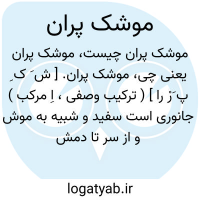 موشک پران. [ ش َ ک ِ پ َرْ را ] ( ترکیب وصفی، اِ مرکب ) جانوری است سفید و شبیه به موش و از سر تا دمش خطی سیاه کشیده و دمش موی بسیار دارد و در بالای درخت می باشد و ازدرخت به درخت می جهد هرچند فاصله بسیار باشد و از این جهت است که موشک پران گویندش. ( برهان ) ( آنندراج ). موش پرنده. ( ناظم الاطباء ). رسک. اَشنیک. موش خرما. ( یادداشت مؤلف ). رجوع به ترکیب موش خرما در ذیل موش شود. || سنجاب. ( ناظم الاطباء ). رجوع به سنجاب شود. || شب پره و خفاش. ( ناظم الاطباء ).