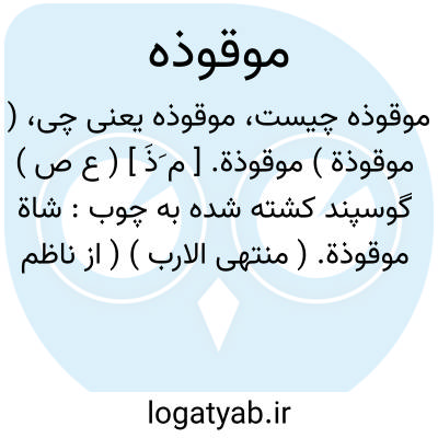 ( موقوذة ) موقوذة. [ م َذَ ] ( ع ص ) گوسپند کشته شده به چوب: شاة موقوذة. ( منتهی الارب ) ( از ناظم الاطباء ) ( از آنندراج ). گوسفندی که به زخم چوب مرده باشد. ( دهار ): حرمت علیکم المیتة و الدم و لحم الخنزیر و ما أهل لغیراﷲ به و المنخنقة و الموقوذة و المتردیة و النطیحة... فان اﷲ غفورٌ رحیم. ( قرآن 3/5 )؛ حرام شد بر شما مردار وخون و گوشت خوک و آنچه بانگ زده شد برای غیر خدایان و خفه شده و به زدن مرده و به زخم تیر از بالا درافتاده و به ضرب شاخ مرده... پس به درستی که خدا آمرزنده مهربان است. ( از تفسیر ابوالفتوح رازی ج 3 ص 356 ).