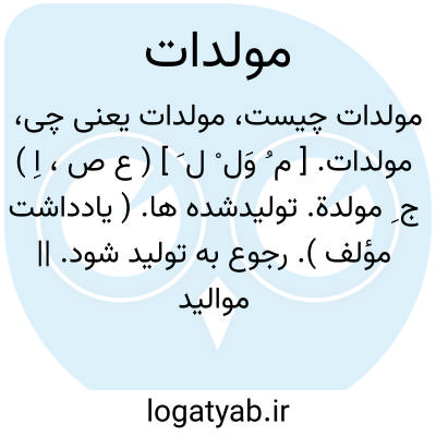 مولدات. [ م ُ وَل ْ ل َ ] ( ع ص، اِ ) ج ِ مولدة. تولیدشده ها. ( یادداشت مؤلف ). رجوع به تولید شود. || موالید ثلاثه. معدن و نبات و حیوان: چون مدار عمارت و آبادانی و بقای نضارت و حیات مولدات نباتی و حیوانی به آب است... ( از ظفرنامه یزدی ). و رجوع به مولد شود.