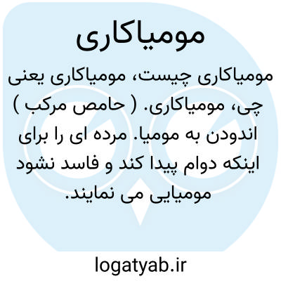 مومیاکاری. ( حامص مرکب ) اندودن به مومیا. مرده ای را برای اینکه دوام پیدا کند و فاسد نشود مومیایی می نمایند. ( لغات فرهنگستان ). و رجوع به مومیایی شود.