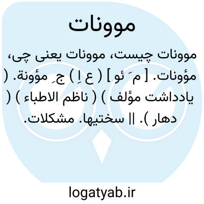 مؤونات. [ م َ ئو ] ( ع اِ ) ج ِ مؤونة. ( یادداشت مؤلف ) ( ناظم الاطباء ) ( دهار ). || سختیها. مشکلات. رنجها.دشواریها. ( از یادداشت مؤلف ): باز در عواقب کارهای عالم تفکر می کردم و مؤونات آن را پیش چشم آوردم. ( کلیله و دمنه ). رجوع به مؤنت و مؤنه شود. || ج ِ مؤن، به معنی نوعی از مالیات و عوارض. ( از یادداشتهای قزوینی ج 7 ص 165 ). عوارض. مالیات. نوعی مالیات بوده است. ( از یادداشت مؤلف ): ترخان آن بود که از همه مؤونات معاف بود. ( تاریخ جهانگشای جوینی ). و رجوع به مؤن و مؤونت شود.