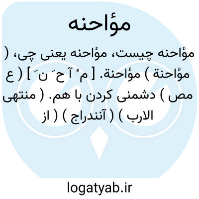 ( مؤاحنة ) مؤاحنة. [ م ُ آ ح َ ن َ ] ( ع مص ) دشمنی کردن با هم. ( منتهی الارب ) ( آنندراج ) ( از اقرب الموارد ) ( ناظم الاطباء ). با یکدیگر کینه داشتن. ( تاج المصادر بیهقی ).
