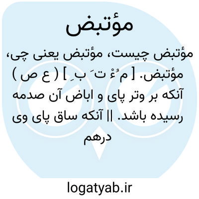 مؤتبض. [ م ُءْ ت َ ب ِ ] ( ع ص ) آنکه بر وتر پای و اباض آن صدمه رسیده باشد. || آنکه ساق پای وی درهم کشیده شده باشد. ( ناظم الاطباء ).