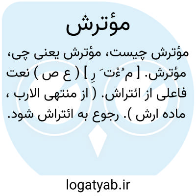 مؤترش. [ م ُءْت َ رِ ] ( ع ص ) نعت فاعلی از ائتراش. ( از منتهی الارب، ماده ارش ). رجوع به ائتراش شود. قبول ارش کننده.