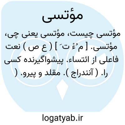 مؤتسی. [ م ُءْ ت َ ] ( ع ص ) نعت فاعلی از ائتساء. پیشواگیرنده کسی را. ( آنندراج ). مقلد و پیرو. ( ناظم الاطباء ) ( از منتهی الارب ).
