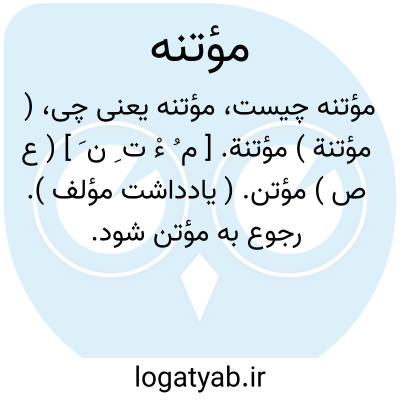 ( مؤتنة ) مؤتنة. [ م ُ ءْ ت ِ ن َ ] ( ع ص ) مؤتن. ( یادداشت مؤلف ). رجوع به مؤتن شود.