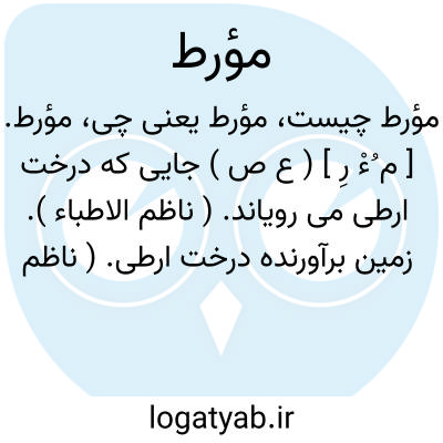 مؤرط. [ م ُءْ رِ ] ( ع ص ) جایی که درخت ارطی می رویاند. ( ناظم الاطباء ). زمین برآورنده درخت ارطی. ( ناظم الاطباء ) ( از اقرب الموارد ). مورط. ( آنندراج ).