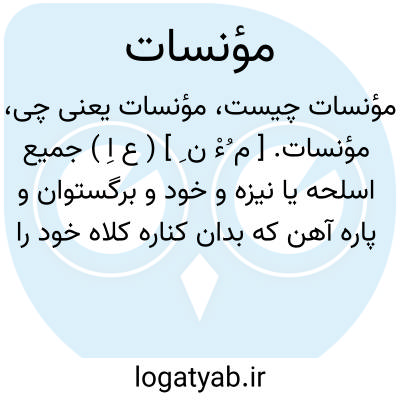 مؤنسات. [ م ُءْ ن ِ ] ( ع اِ ) جمیع اسلحه یا نیزه و خود و برگستوان و پاره آهن که بدان کناره کلاه خود را به حلقه های زره بر گردن بندند. || سپر. ( ناظم الاطباء ) ( منتهی الارب ) ( آنندراج ).